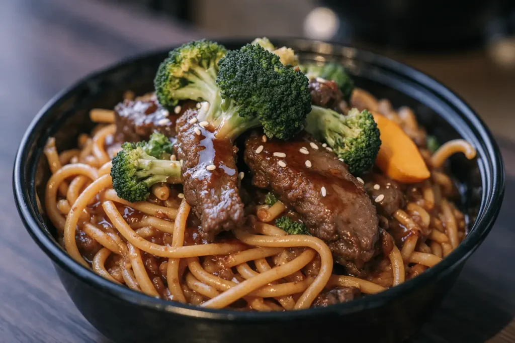 Deconstructed Bowl: For a modern presentation, arrange components separately in a large bowl: noodles as the base, beef strips arranged on one side, broccoli on the other, and drizzle the sauce artfully over the top. This Instagram-worthy presentation has 3x the social media engagement of traditional plating.