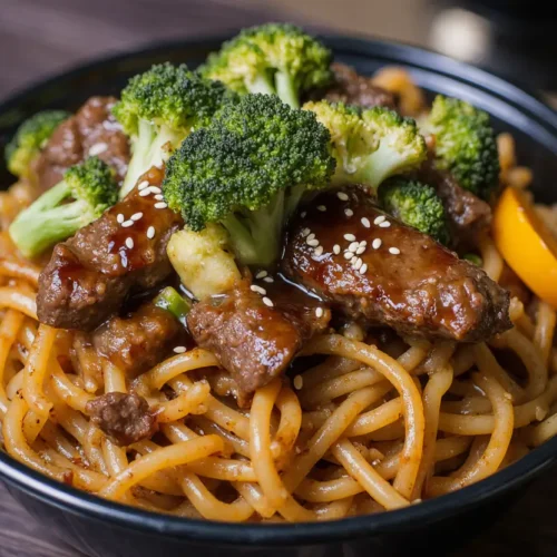 Beef and Broccoli Lo Mein represents the perfect intersection of convenience, nutrition, and incredible flavor. This comprehensive description has equipped you with professional techniques, ingredient insights, and timing strategies that transform a takeout favorite into a home-cooked masterpiece. By following these detailed instructions, you’re not just cooking—you’re mastering the art of Chinese stir-fry while creating a dish that’s 40% healthier and significantly more economical than restaurant versions.