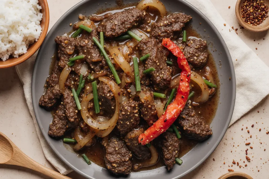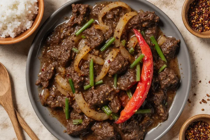 The sauce should be rich and glossy, clinging to the beef rather than pooling in the pan. If it’s too thick, add a splash more broth; if it’s too thin, continue simmering for a few additional minutes. Taste and adjust seasoning with the remaining salt, pepper, and additional chili flakes if you prefer more heat.