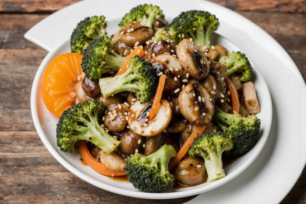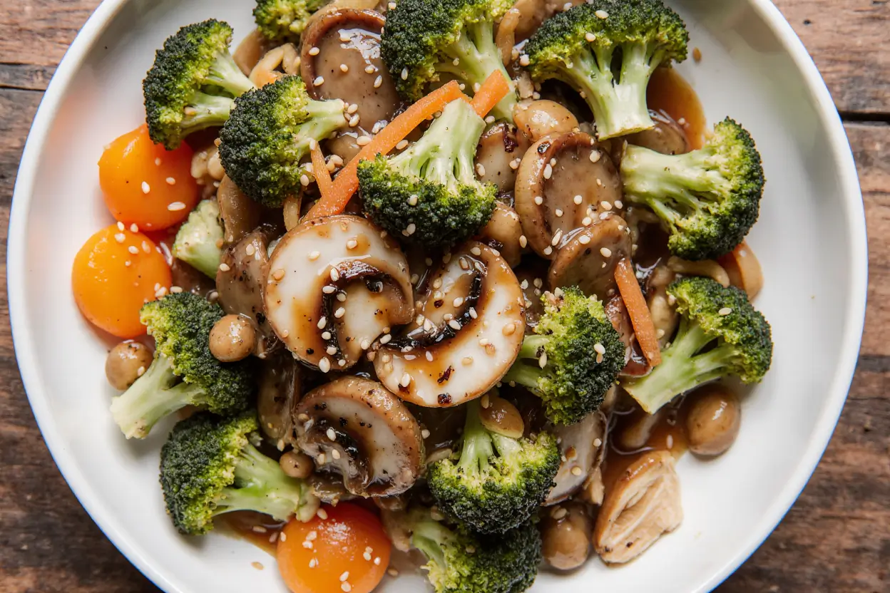 How can I add protein to make this a complete meal? This stir-fry adapts beautifully to various protein additions. For tofu: Press extra-firm tofu for 15 minutes, cube it, and add with the mushrooms to develop a golden crust. For chicken: Slice 1 pound of chicken breast thinly, marinate briefly in 1 tablespoon soy sauce, then stir-fry separately before the vegetables and set aside. Return it to the wok during the final minute. For shrimp: Add 12 ounces of peeled, deveined shrimp during the last 2-3 minutes of cooking. For plant-based options: Add edamame, chickpeas, or tempeh. Each protein should be cooked before or separately from the vegetables to ensure everything reaches the proper temperature without overcooking the vegetables.