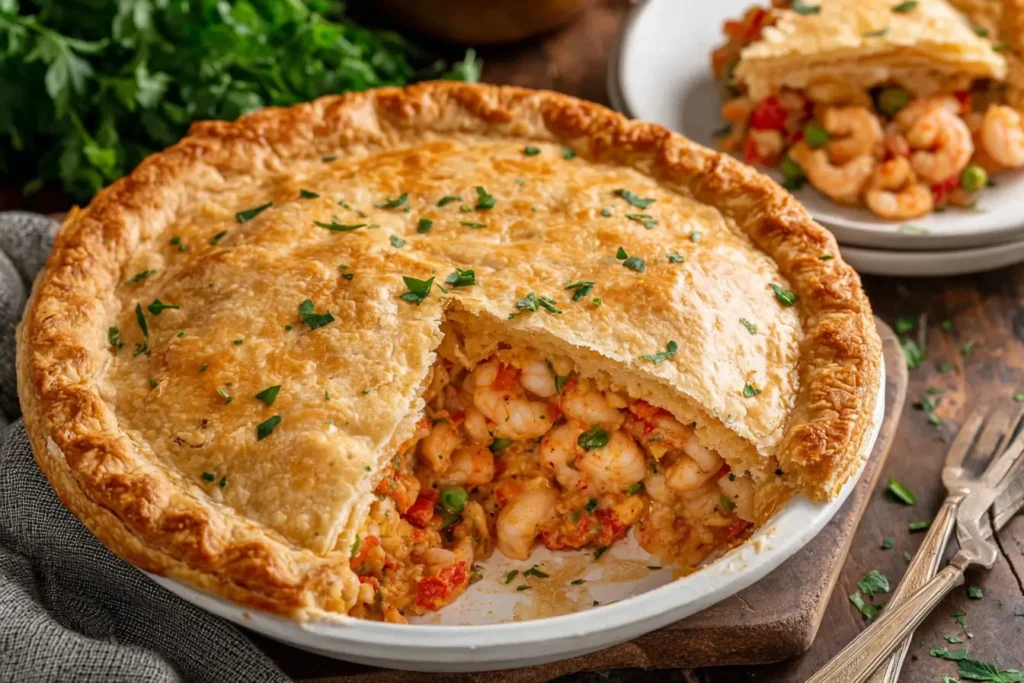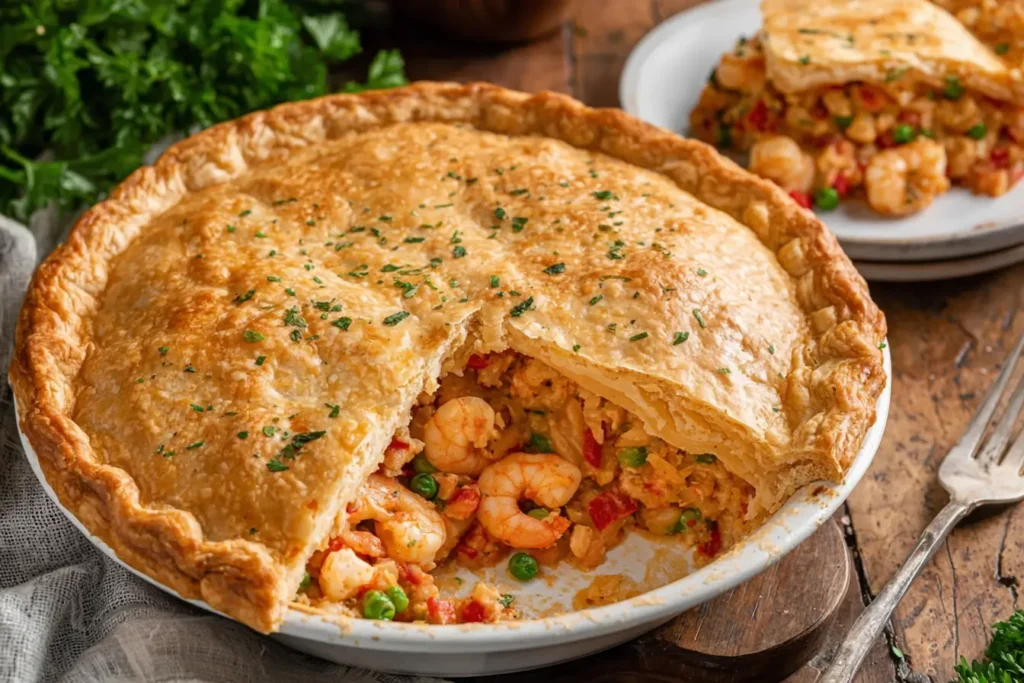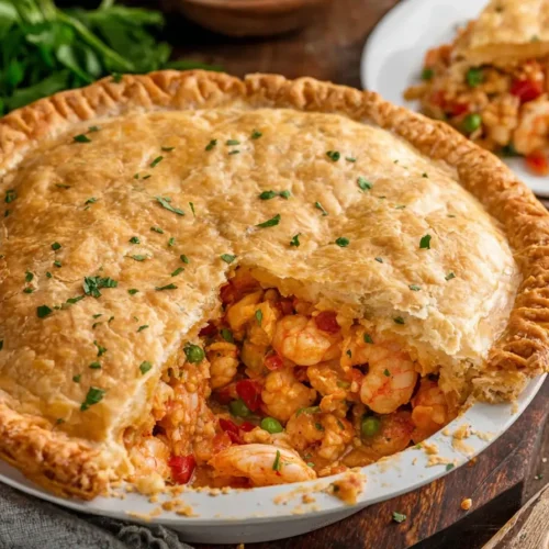 Few dishes combine comfort, richness, and bold flavor quite like a homemade seafood pot pie. This Creamy Cajun Seafood Pot Pie takes the traditional pot pie concept and gives it a Southern-inspired upgrade. Loaded with juicy shrimp, tender crawfish, sautéed vegetables, and a rich Cajun-spiced cream sauce, this savory pie is baked under a golden, flaky crust that delivers the perfect balance of creamy filling and buttery pastry.