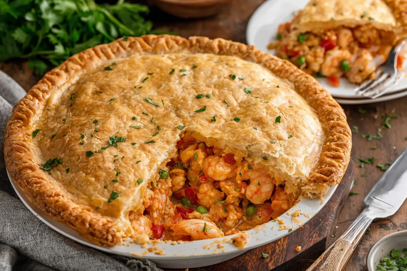 Few dishes combine comfort, richness, and bold flavor quite like a homemade seafood pot pie. This Creamy Cajun Seafood Pot Pie takes the traditional pot pie concept and gives it a Southern-inspired upgrade. Loaded with juicy shrimp, tender crawfish, sautéed vegetables, and a rich Cajun-spiced cream sauce, this savory pie is baked under a golden, flaky crust that delivers the perfect balance of creamy filling and buttery pastry.