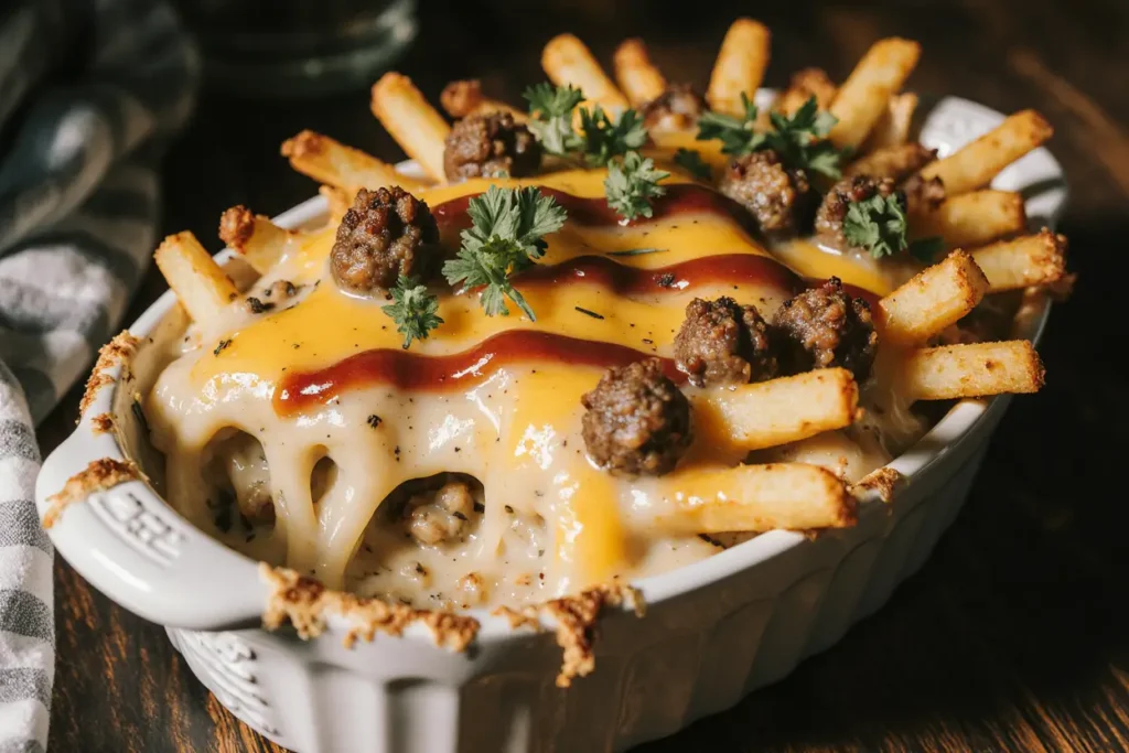Reheating from Refrigerated: For best results, reheat individual portions in the microwave for 2-3 minutes on medium power, or reheat the entire casserole covered with foil in a 350°F oven for 20-25 minutes until heated through. Uncovering for the final 5 minutes helps restore some crispness to the fries.