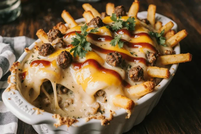 Q: Can I use fresh potatoes instead of frozen french fries? A: Absolutely! Cut 2-3 pounds of russet potatoes into fry shapes, toss with 3 tablespoons of oil and your seasonings, and par-bake them at 425°F for 15 minutes before assembling the casserole. This adds about 20 minutes to your prep time but provides complete control over ingredients and often results in superior texture.