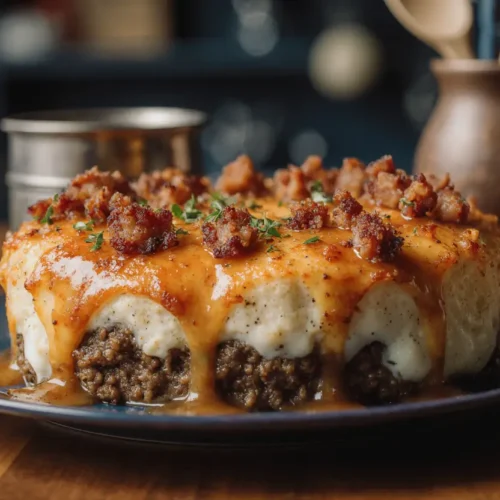 This Cheesy Bacon Burger Lasagna brilliantly merges two comfort food classics into one extraordinary dish that’s both impressive and surprisingly simple to prepare. With its layers of seasoned beef, crispy bacon, creamy cheeses, and perfectly cooked pasta, it delivers satisfaction with every forkful. Whether you’re feeding a hungry family on a weeknight or hosting casual friends for dinner, this recipe consistently delivers crowd-pleasing results in just 80 minutes.