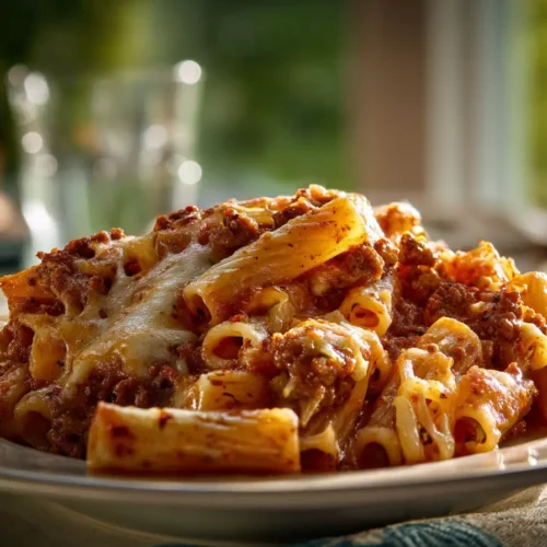 There’s something undeniably comforting about a bubbling, golden-brown pan of Cheesy Baked Ziti with Ground Beef emerging from the oven. The layers of tender pasta, savory meat sauce, and creamy cheeses come together in a way that feels both indulgent and homey. This classic Italian-American casserole is hearty, satisfying, and perfect for feeding a hungry family or a crowd.