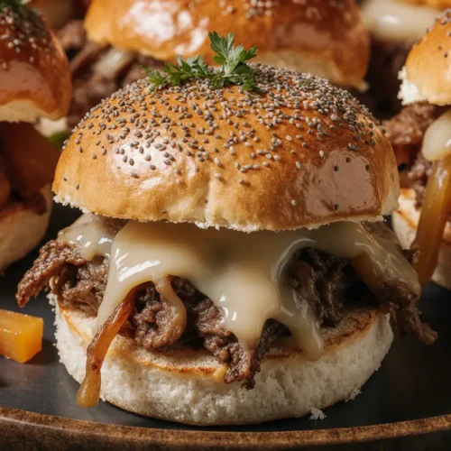 Cheesy Philly Sliders represent the perfect intersection of comfort food indulgence and practical home cooking—they’re quick enough for Tuesday night dinner yet impressive enough for weekend entertaining. This recipe transforms premium ingredients into extraordinary results without requiring professional culinary skills or specialty equipment. The combination of tender, well-seasoned steak, caramelized vegetables, melted cheese, and perfectly toasted buns creates a symphony of flavors and textures that consistently delights everyone at the table.