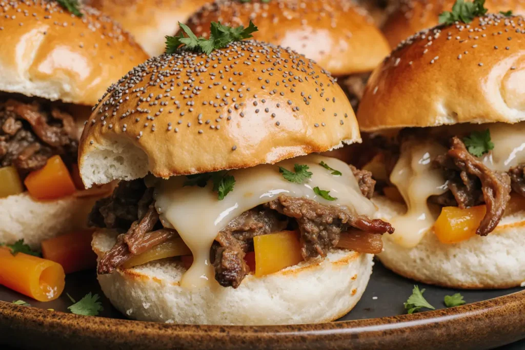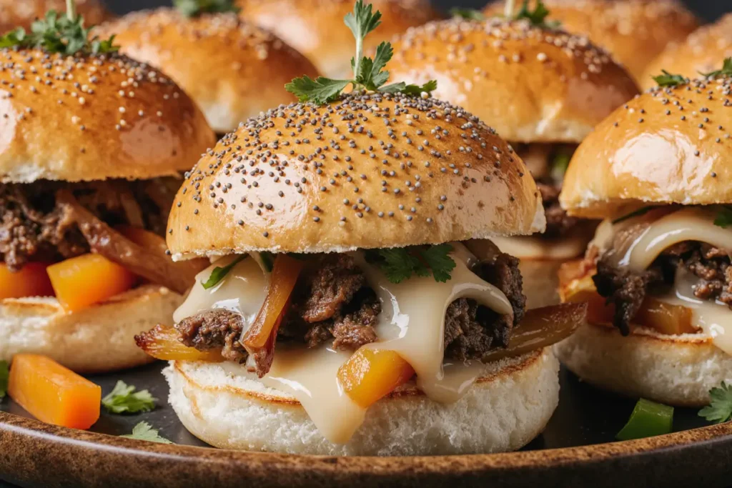 Elevate your Cheesy Philly Sliders experience with these creative accompaniments and presentation ideas: