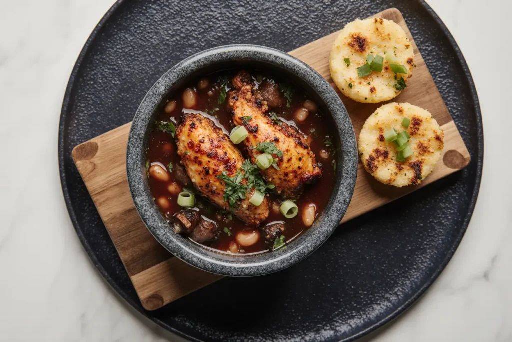 For elevated presentation, drizzle additional orange glaze around the plates and sprinkle microgreens over the stew. The contrast of colors – golden cornbread, caramelized wings, and rich brown stew – creates an Instagram-worthy presentation that tastes even better than it looks.