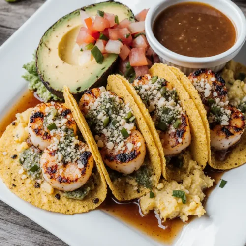 Easily! Simply omit the sour cream and cheese, or substitute with dairy-free alternatives like cashew crema or coconut yogurt. The tacos remain delicious with just avocado providing creaminess. For additional allergen concerns: the recipe is naturally nut-free (unless using alternative toppings), and corn tortillas make it gluten-free. For shellfish allergies, substitute with chicken, fish, or plant-based proteins as mentioned above—the versatile marinade adapts to virtually any dietary restriction.