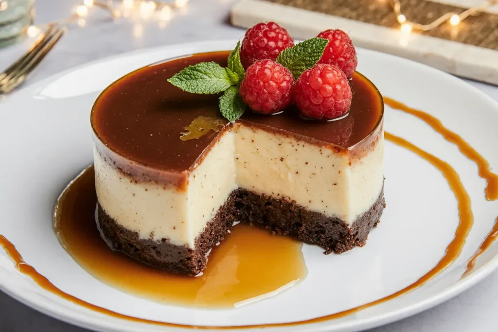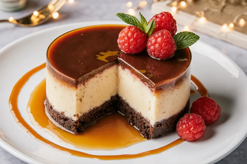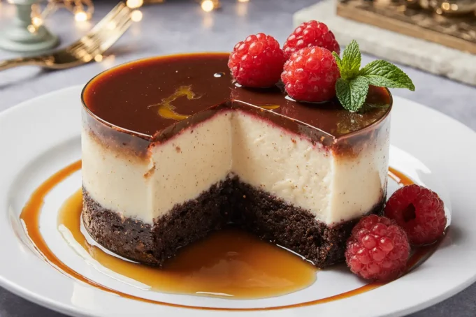 A: Yes, though it requires several substitutions. Use coconut milk (full-fat canned) instead of evaporated milk, vegan condensed milk (Nature’s Charm brand works well), and dairy-free cream cheese. For the cake, use plant-based milk and ensure your cake mix doesn’t contain milk powder, or make a from-scratch vegan chocolate cake. The texture will differ slightly—coconut milk creates a firmer, slightly less silky flan—but the taste remains delicious and the “impossible” flip still occurs.
