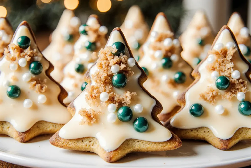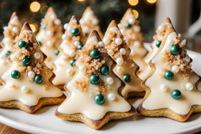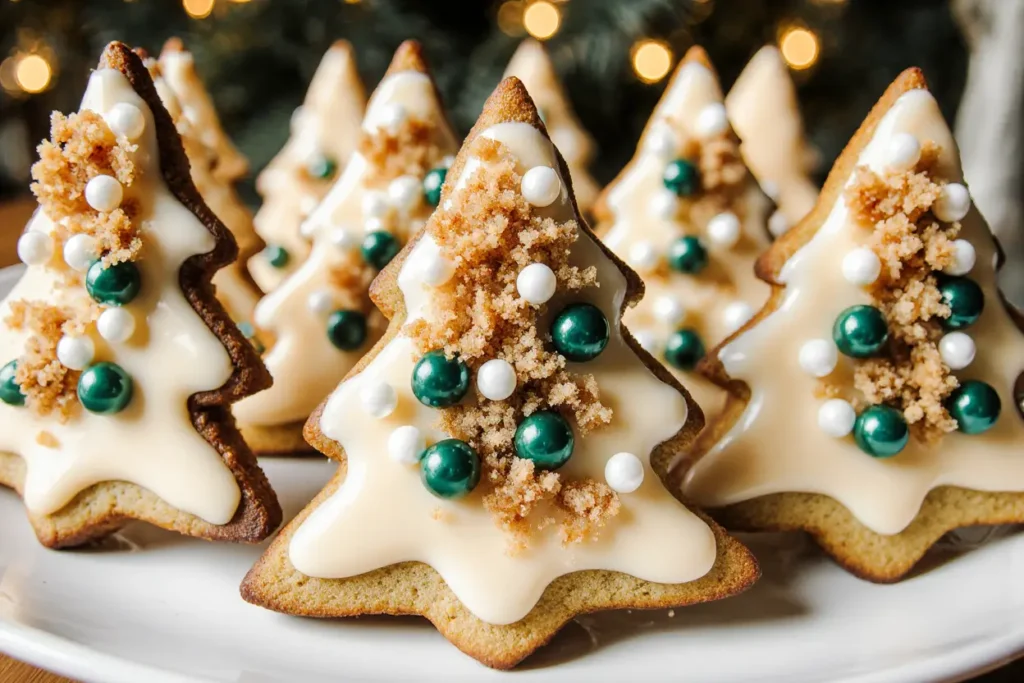 Present your Christmas tree sugar cookies on a rustic wooden board lined with parchment paper, interspersed with fresh rosemary sprigs and cinnamon sticks to create an aromatic, visually stunning display. The natural greenery echoes the tree shapes while adding sophisticated fragrance that enhances the overall sensory experience.
