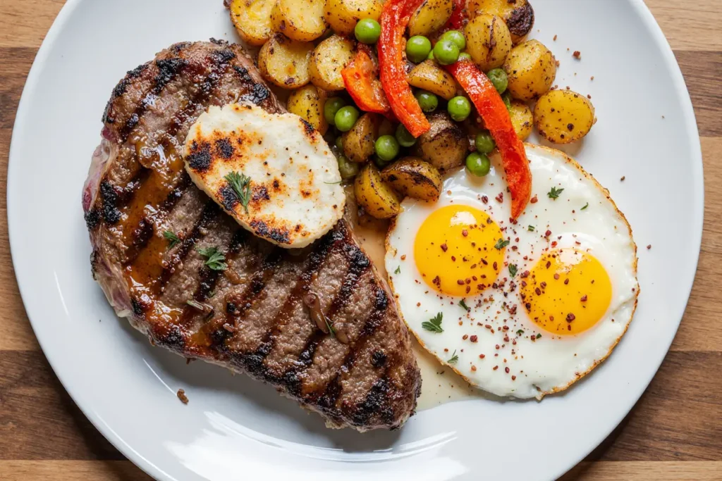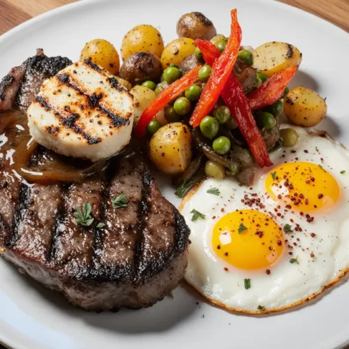 A: Yes, several modifications work well. For egg-free versions, firm tofu scrambled with turmeric makes a suitable substitute, though it won’t provide the same runny yolk experience. For dairy-free preparation, replace butter with high-quality olive oil, avocado oil, or coconut oil for cooking. The steak is naturally dairy-free, and you can omit the optional cheese from the potatoes or use dairy-free alternatives. These adjustments maintain the hearty, satisfying nature of the dish while accommodating dietary restrictions.