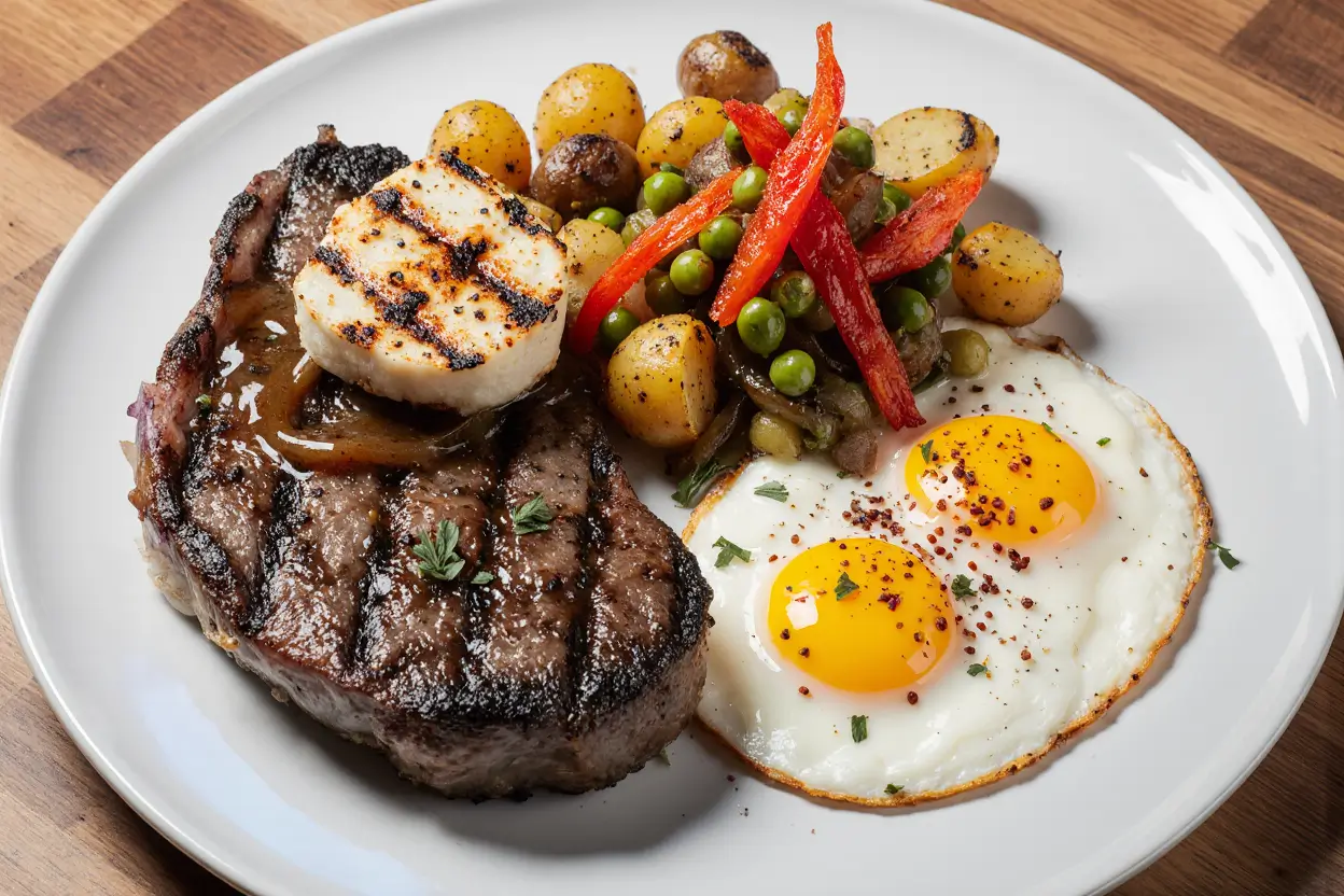 A: Yes, several modifications work well. For egg-free versions, firm tofu scrambled with turmeric makes a suitable substitute, though it won’t provide the same runny yolk experience. For dairy-free preparation, replace butter with high-quality olive oil, avocado oil, or coconut oil for cooking. The steak is naturally dairy-free, and you can omit the optional cheese from the potatoes or use dairy-free alternatives. These adjustments maintain the hearty, satisfying nature of the dish while accommodating dietary restrictions.
