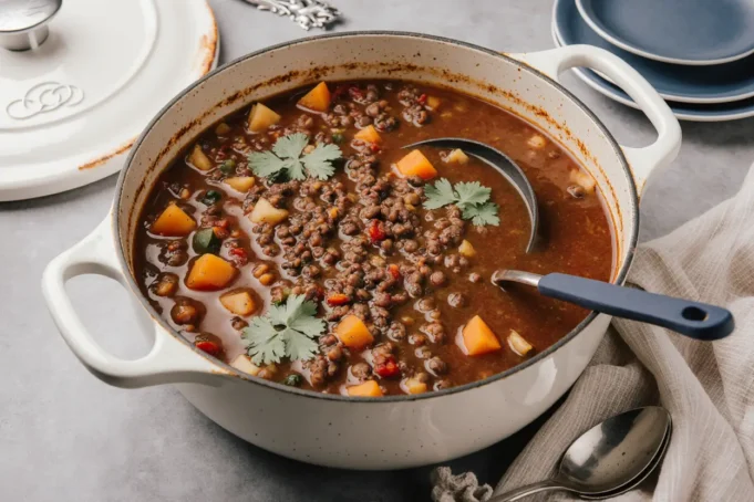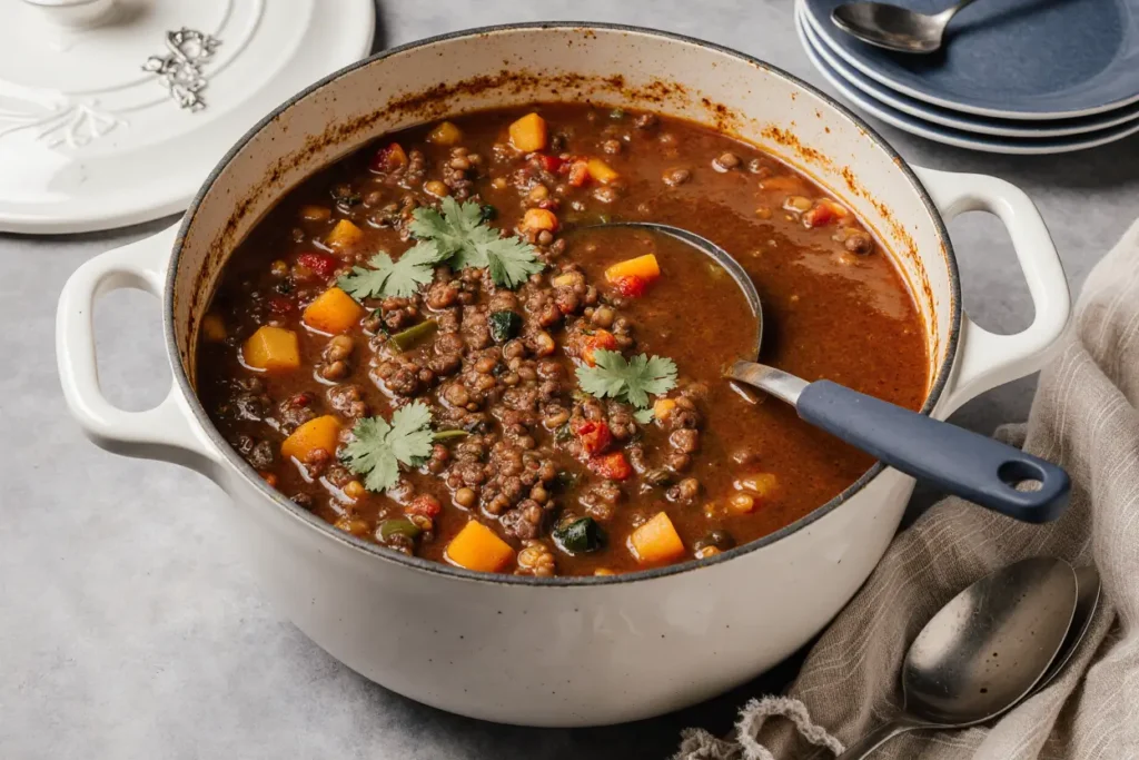 Boiling Instead of Simmering: Aggressive boiling toughens beef proteins and causes lentils to break apart. Maintain a gentle simmer where you see occasional bubbles breaking the surface, not a rolling boil. Low and slow wins the race every time.