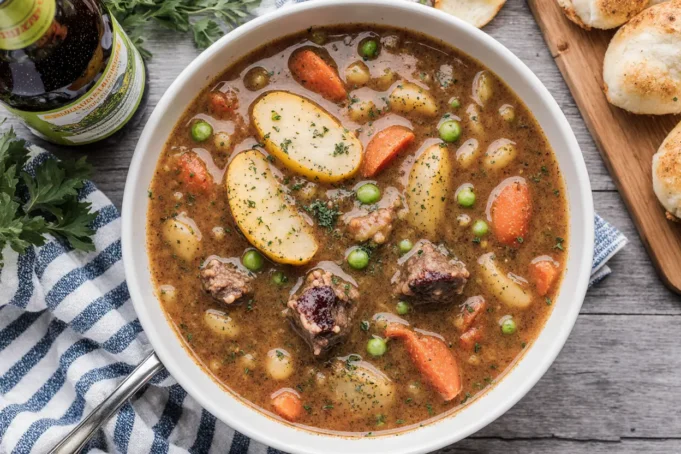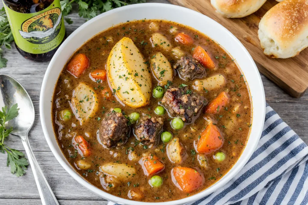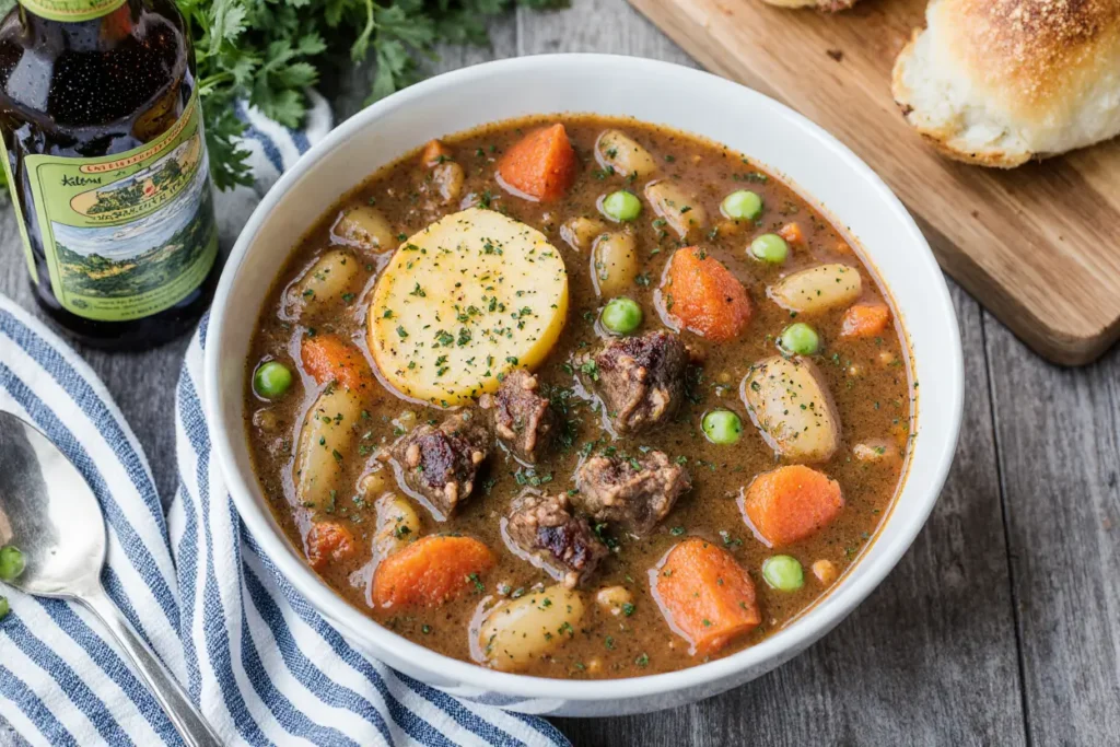 Serve this hearty easy beef dinner over a bed of creamy mashed potatoes, which soak up the rich sauce beautifully. Buttered egg noodles offer another traditional option that’s particularly popular with children. For a rustic presentation, serve in individual bread bowls—hollow out crusty sourdough loaves and ladle the beef mixture inside for an Instagram-worthy meal.