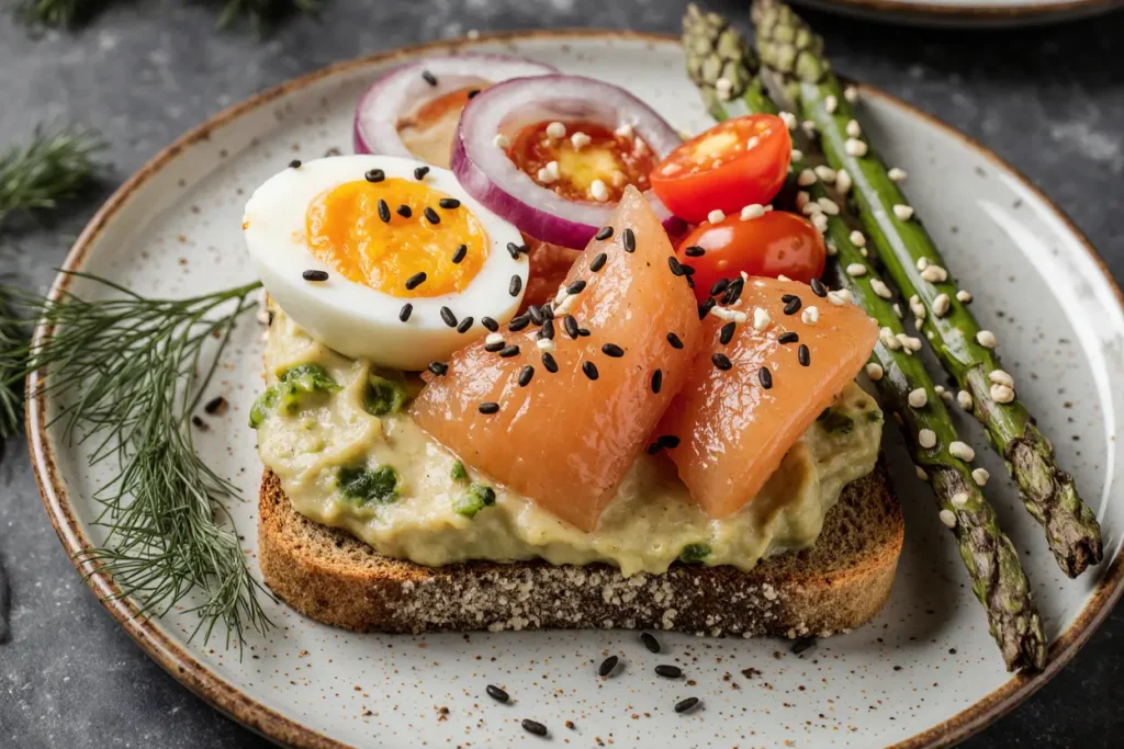 For Vegan Adaptation: Replace the eggs with seasoned tofu scramble or chickpea “eggs,” substitute plant-based cream cheese, and use smoked carrot lox or marinated beet slices instead of salmon. You’ll maintain the layered complexity while keeping the dish entirely plant-based.