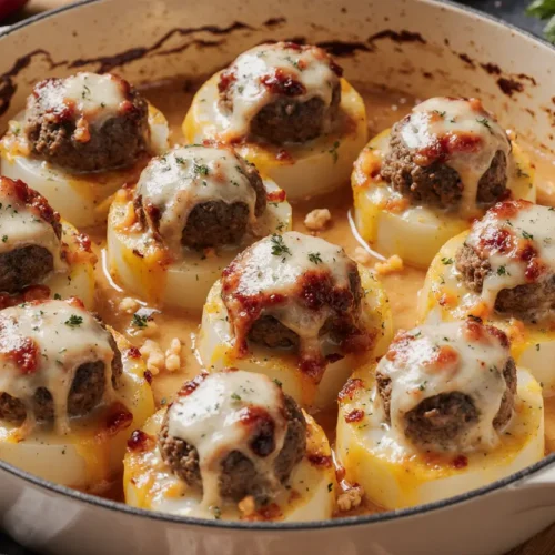 This Creamy Baked Potato & Meatball Comfort Bake represents everything comfort food should be—rich, satisfying, relatively simple to prepare, and utterly delicious. By combining tender, well-seasoned meatballs with layers of creamy potatoes and melted cheese, you create a one-dish wonder that feeds both body and soul. The recipe’s flexibility allows for countless variations, from healthier swaps to vegetable additions, ensuring it fits seamlessly into your family’s dietary preferences and lifestyle.