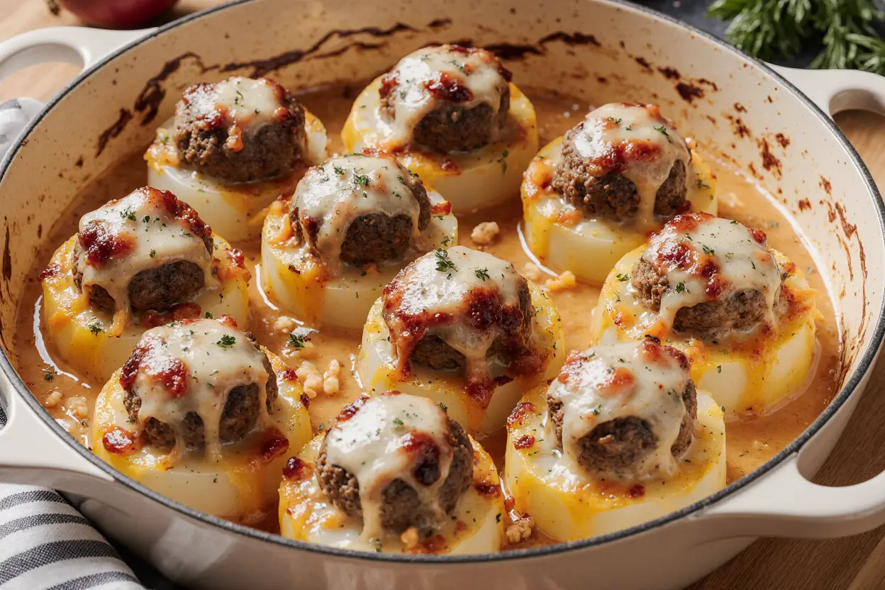 Ingredient Prep Ahead: You can prepare meatballs and freeze them raw for up to 2 months, or brown them and refrigerate for 2 days before assembly. Slice potatoes up to 12 hours ahead and store in cold water in the refrigerator to prevent browning—drain and dry thoroughly before using.