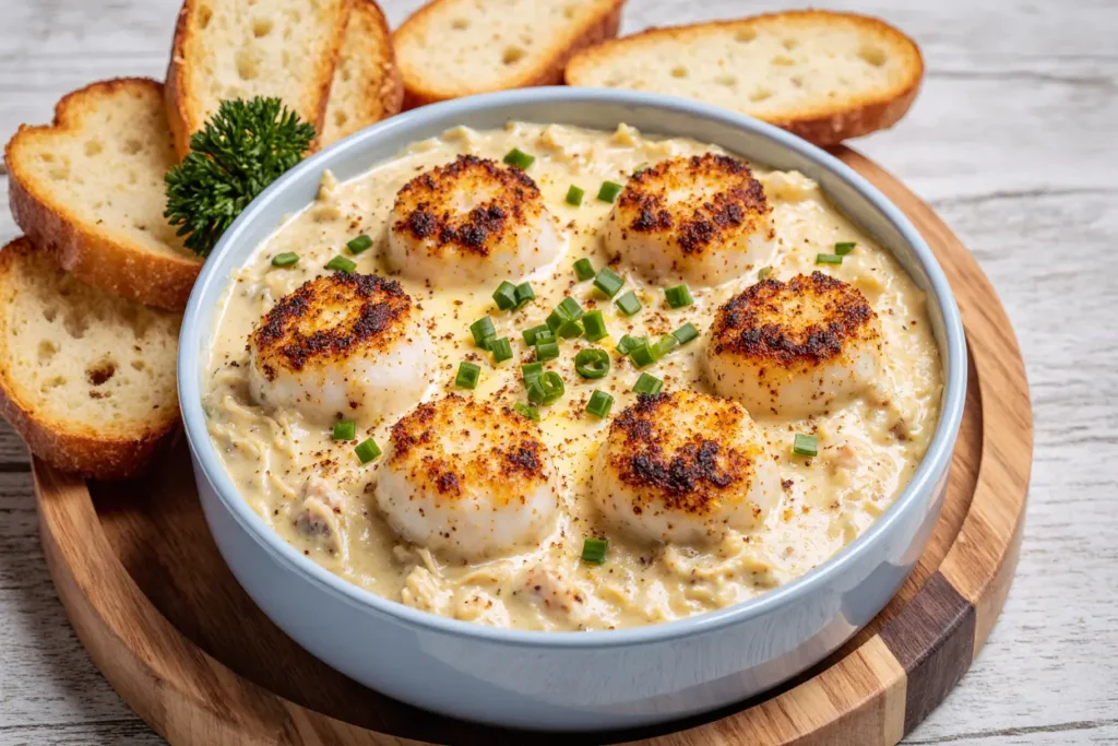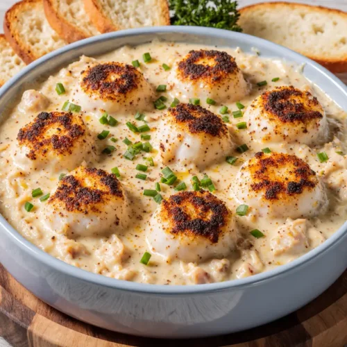 This creamy crab dip shines when paired with the right accompaniments. Classic crackers like water crackers, butter crackers, or sturdy wheat crackers provide the perfect neutral vehicle for the rich dip. Toasted baguette slices brushed with garlic butter add a French-inspired elegance and satisfying crunch. For a lighter option, serve with an array of colorful vegetables—endive leaves create natural “scoops,” while bell pepper strips, cucumber rounds, and celery sticks add freshness that balances the dip’s richness.
