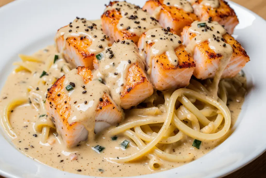 Q: Can I make this dish dairy-free? A: Yes, with excellent results. Substitute full-fat coconut cream for heavy cream (use the thick cream from the top of a refrigerated can). Replace butter with olive oil or vegan butter. Use nutritional yeast (¼ cup) instead of Parmesan for that cheesy, umami flavor. The sauce won’t taste identical to the original but will be rich, flavorful, and completely dairy-free. Some testers actually prefer the subtle coconut notes with salmon.