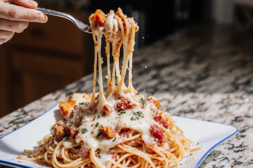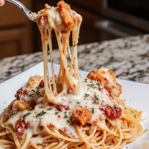 This Cheesy Spaghetti in Garlic Parmesan & Cream Cheese Tomato Sauce proves that extraordinary meals don’t require complicated techniques or hours in the kitchen. By combining the tangy richness of cream cheese with the nutty depth of Parmesan in a vibrant tomato base, you’ve created a restaurant-quality dish that rivals anything you’d order at an Italian bistro—at a fraction of the cost. The beauty of this recipe lies in its versatility: customize it with your favorite proteins, adjust the richness to suit your dietary needs, or keep it vegetarian for a satisfying meatless meal. Whether you’re cooking for your family on a busy Tuesday or hosting friends for dinner, this crowd-pleasing pasta delivers comfort, flavor, and satisfaction in every bite.