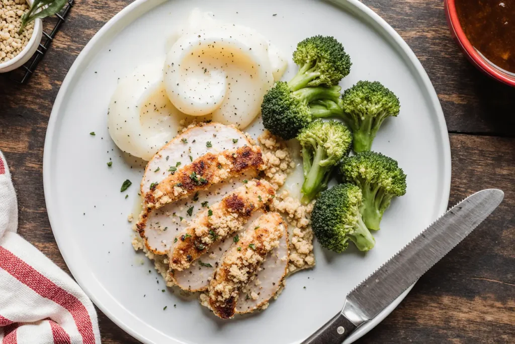 For an elegant dinner party presentation, slice the chicken on a bias, fan it across the plate, and drizzle the sauce artfully around it. Garnish with microgreens, toasted pine nuts, or a balsamic reduction for a restaurant-worthy appearance.