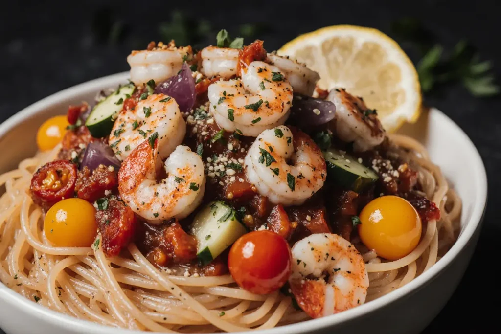 Substitution Suggestions: Swap shrimp for chicken, canned tuna, or chickpeas for vegetarian options. Replace Greek yogurt with sour cream or avocado-based mayo. Use gluten-free pasta for dietary restrictions. Cherry tomatoes and cucumber make excellent additional vegetable additions.