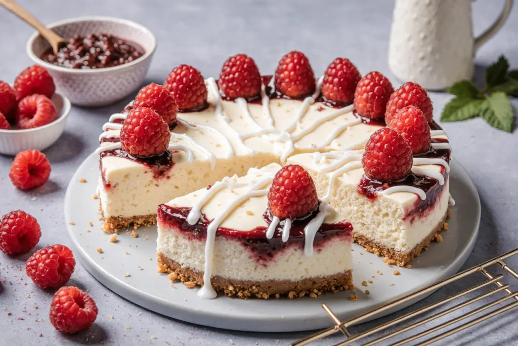 Before serving, remove the springform pan sides. Create elegant white chocolate shavings using a vegetable peeler on a white chocolate bar, or drizzle with melted white chocolate. Fresh berries, edible flowers, or a light dusting of powdered sugar also make stunning garnishes.