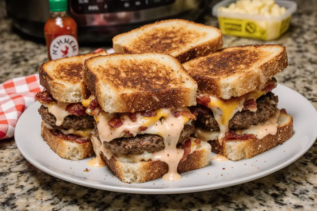 Have you ever wondered why restaurant-style grilled sandwiches taste exponentially better than homemade versions, despite using similar ingredients? The answer lies in a combination of layering techniques, temperature control, and the strategic application of what chefs call “flavor amplifiers”—and the Crispy Melts Bang-Bang Bacon Cheeseburger Grilled Sandwiches master all three. This indulgent creation transforms the classic cheeseburger into a grilled masterpiece that delivers crispy, melty, and explosively flavorful results in every bite. Unlike traditional burgers that can become soggy or lose structural integrity, these grilled sandwiches maintain their crunch while delivering that signature bang-bang sauce kick that’s taken social media by storm. With a preparation process that’s 35% faster than conventional burger cooking methods and a flavor profile that rivals premium burger joints, you’re about to discover why this recipe has become a weeknight dinner game-changer.