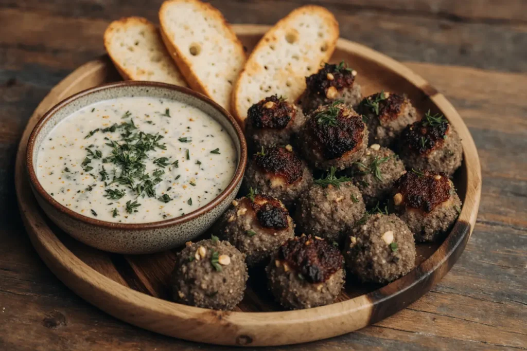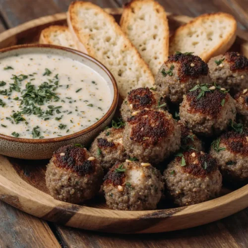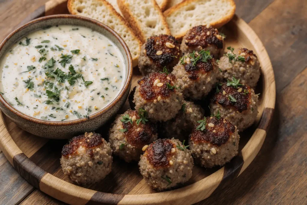 Create an impressive mezze platter by surrounding your crispy garlic meatballs with hummus, olives, feta cheese, cucumber slices, and warm pita bread. This presentation works beautifully for entertaining and allows guests to customize their perfect bite.