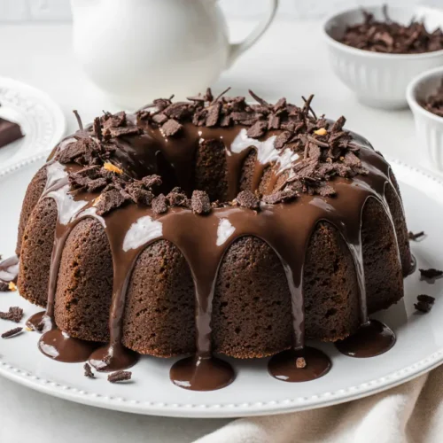 This decadent glazed chocolate bundt cake delivers everything you want in a dessert: rich chocolate flavor, impressive presentation, and remarkably simple preparation. Unlike complicated layer cakes requiring advanced decorating skills, this single-pan wonder produces bakery-quality results that’ll have friends and family convinced you spent hours in the kitchen. The combination of oil and butter keeps the cake incredibly moist for days, while the hot coffee amplifies the chocolate intensity without adding any coffee flavor. The glossy chocolate glaze transforms the already beautiful bundt shape into an elegant centerpiece worthy of any celebration.