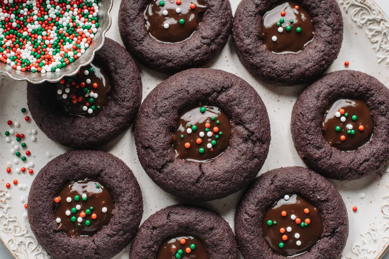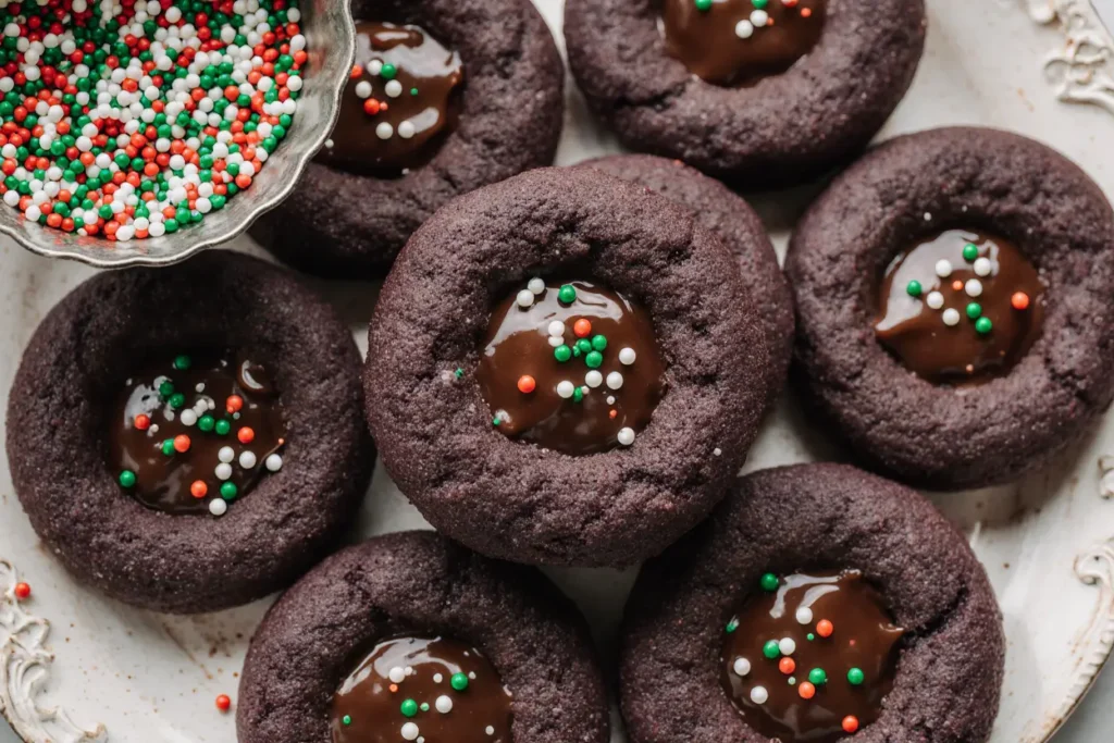 Add a handwritten recipe card or tag that describes the cookies as “Double Chocolate Thumbprint Cookies—Fudgy, Rich, and Made with Love” for a personal touch that recipients will appreciate.