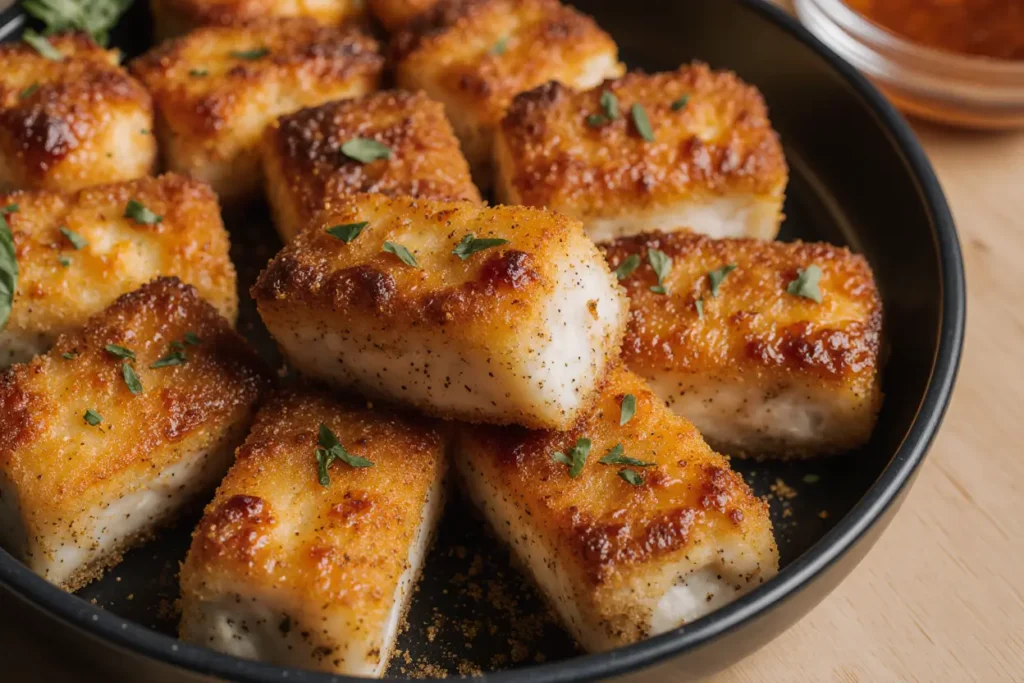 Transfer the cooked buffalo chicken bites to a serving platter and let them rest for 3-5 minutes. This resting period allows the molten cheese center to set slightly, preventing immediate cheese lava burns while maintaining that satisfying gooey texture. During this time, the exterior also continues to crisp slightly.