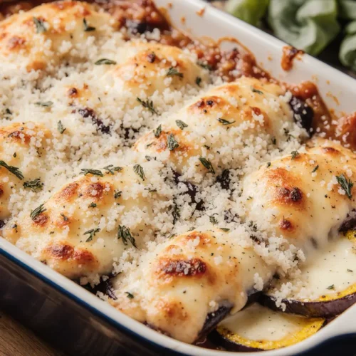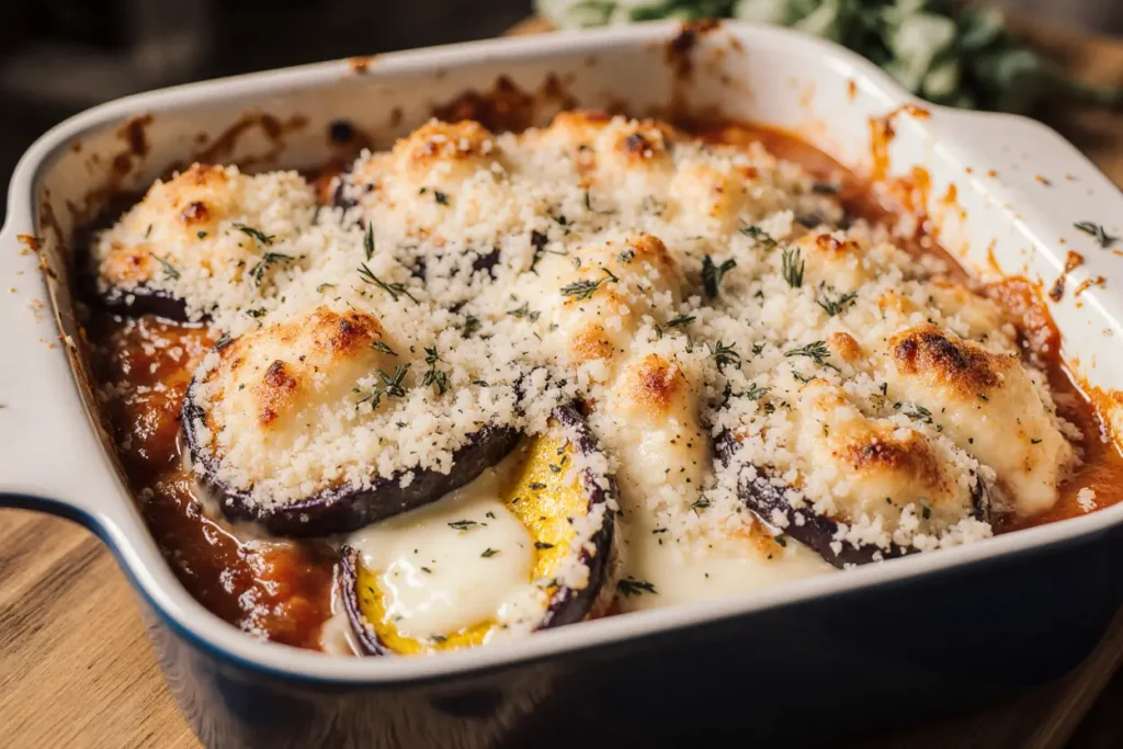 Boost Protein: Add a thin layer of ricotta cheese mixed with spinach between the eggplant layers, increasing protein content by 8 grams per serving while adding calcium and iron. The creamy ricotta also creates an even more luxurious texture.