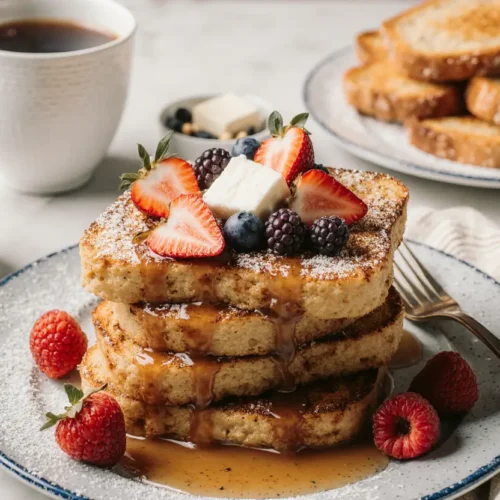 Berry Compote Luxury: Top with homemade mixed berry compote (simmer 2 cups mixed berries with 2 tablespoons sugar and 1 tablespoon lemon juice for 8 minutes). The tartness of berries perfectly balances the sweet, eggy richness of the French toast.