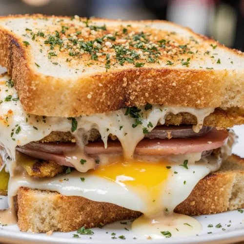 Cut the sandwich diagonally—not just for presentation, but because it’s easier to hold and eat. The diagonal cut also showcases the beautiful layers inside, making your breakfast Instagram-worthy. Serve immediately while the French toast is still warm and the egg yolk is perfectly runny.