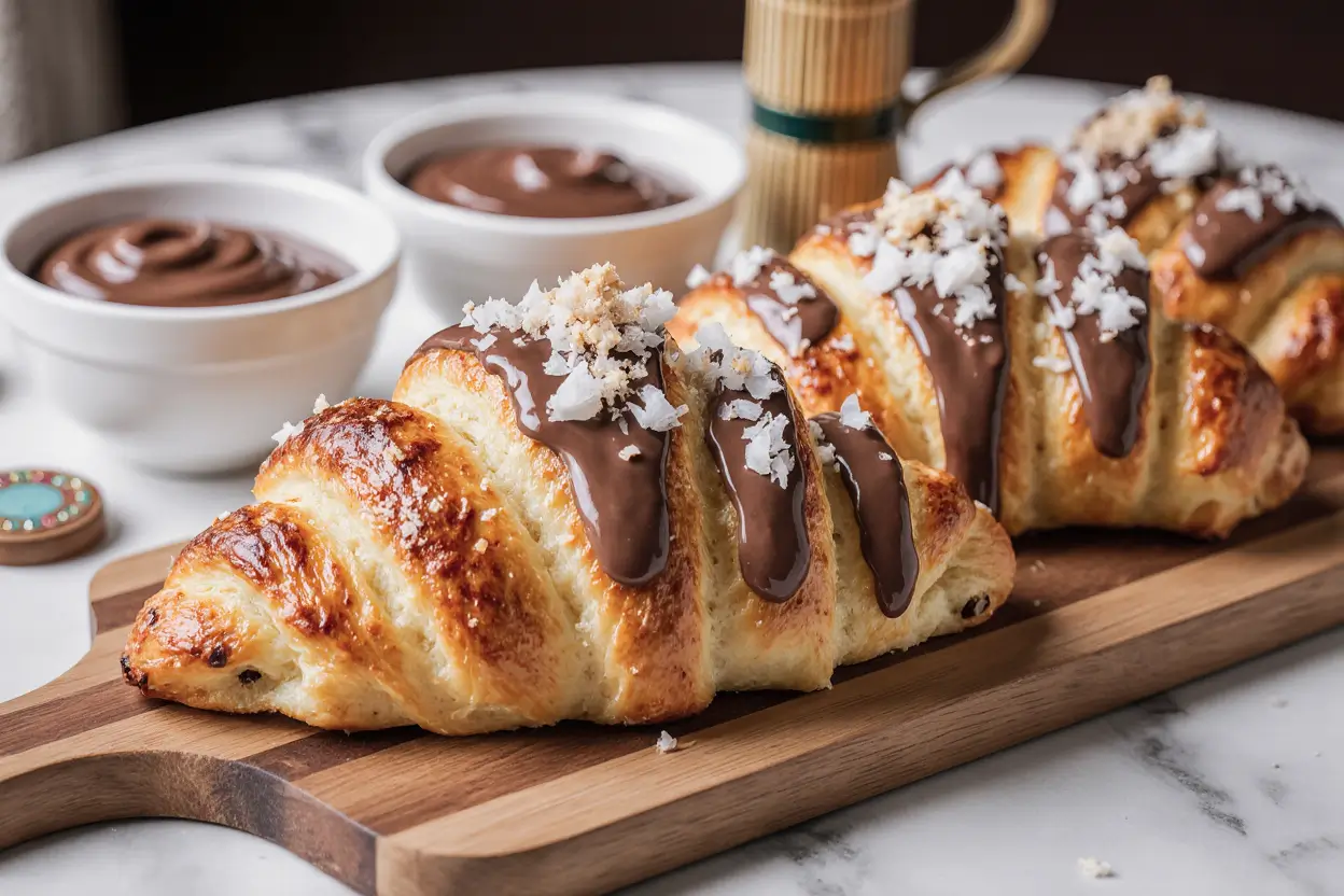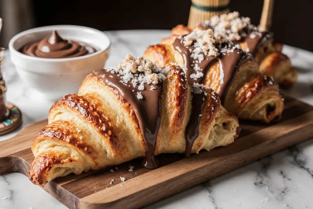 Remove the croissants from the oven and immediately transfer them to a wire cooling rack—this prevents the bottoms from becoming soggy due to trapped steam. Let them cool for 5-10 minutes before serving; this allows the chocolate to set slightly while maintaining a pleasantly warm, melty center. Just before serving, dust lightly with powdered sugar and, if desired, sprinkle with sea salt flakes for a sophisticated sweet-savory contrast that enhances the chocolate’s complexity.