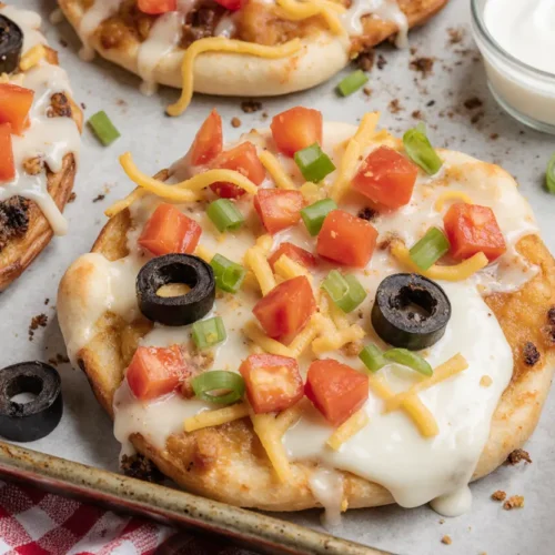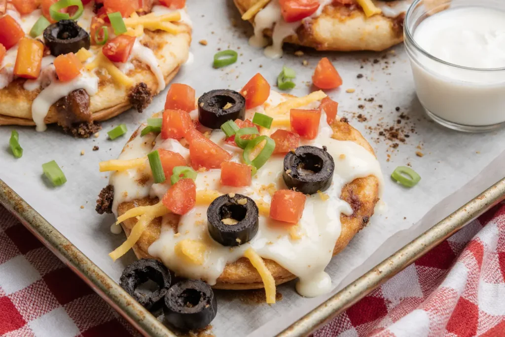 Generously sprinkle shredded Mexican cheese across each pizza, covering the entire surface. The cheese should be abundant enough to melt into a cohesive, bubbly layer. Add diced tomatoes, sliced black olives, and jalapeños according to your heat preference. Don’t be shy with toppings—they add visual appeal, textural contrast, and explosive flavor combinations that make each bite interesting.
