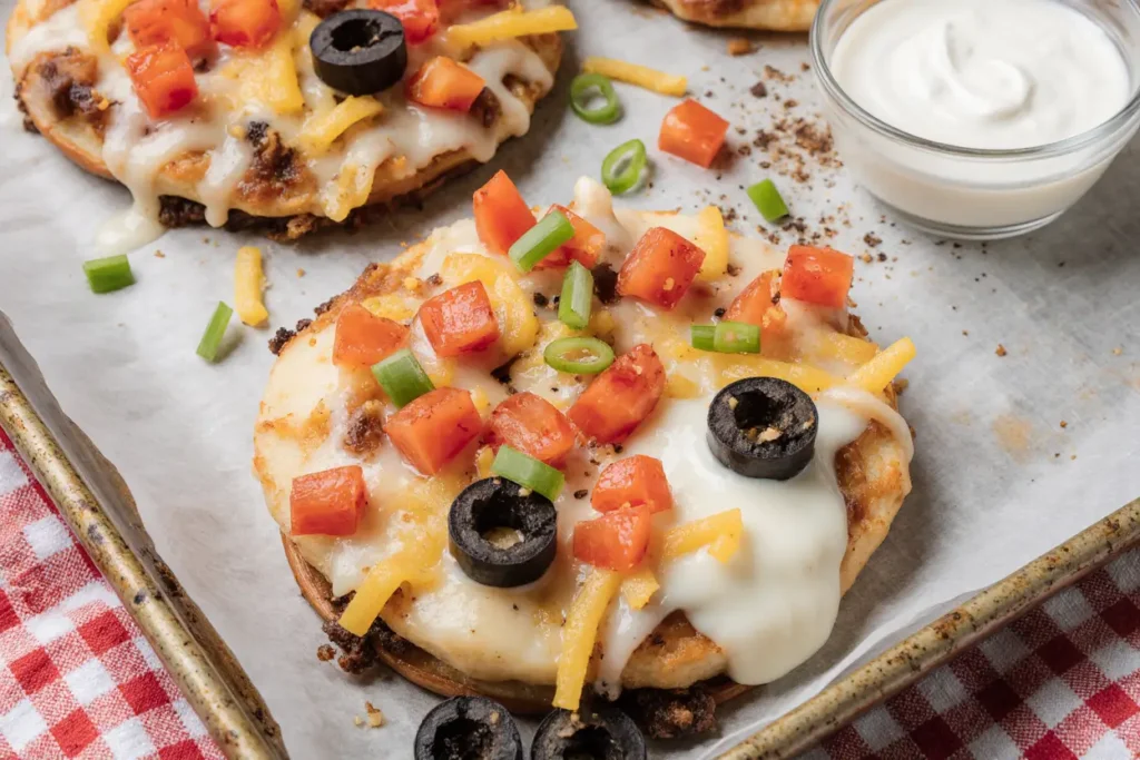 Remove from the oven and let rest for 2 minutes—this brief pause allows the layers to set slightly, making slicing easier. Garnish with freshly sliced green onions, adding vibrant color and mild onion flavor. Cut each pizza into quarters using a sharp pizza cutter or knife. Serve immediately with dollops of sour cream and additional hot sauce on the side for those who crave extra heat.