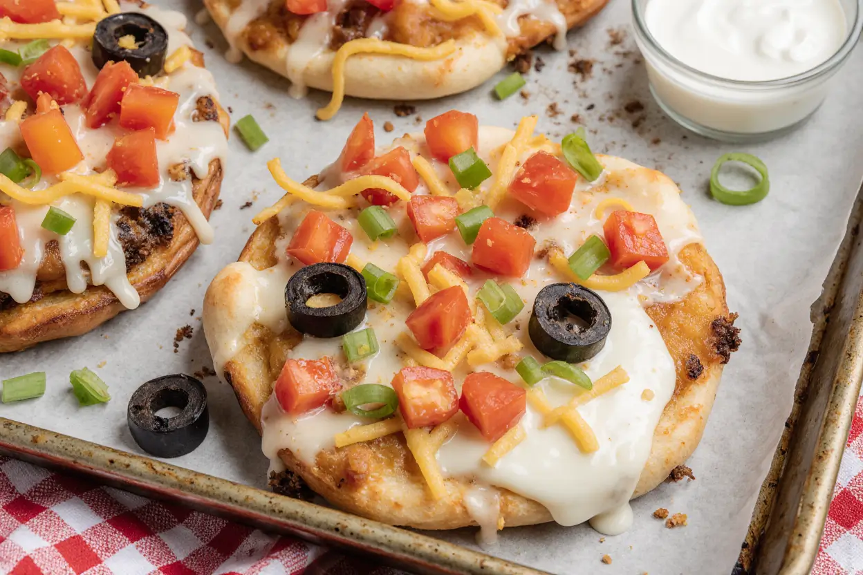 Remove from the oven and let rest for 2 minutes—this brief pause allows the layers to set slightly, making slicing easier. Garnish with freshly sliced green onions, adding vibrant color and mild onion flavor. Cut each pizza into quarters using a sharp pizza cutter or knife. Serve immediately with dollops of sour cream and additional hot sauce on the side for those who crave extra heat.