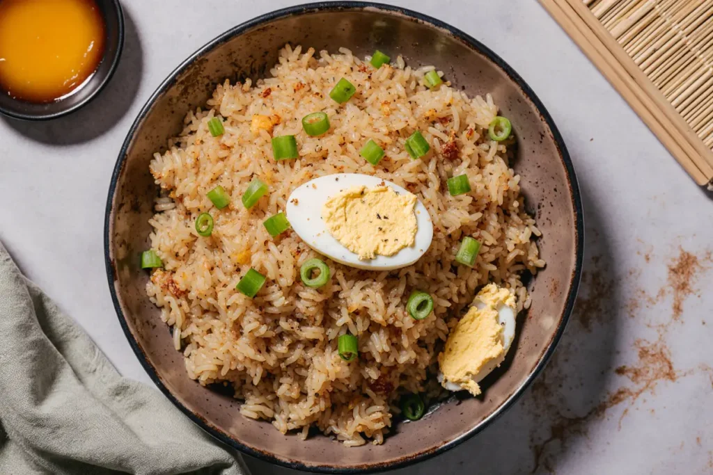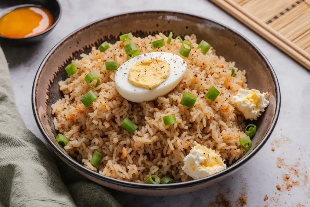 Create a fried rice bowl bar for family dinners or casual entertaining. Set out the basic egg fried rice with various toppings: sliced avocado, kimchi, pickled vegetables, crushed peanuts, crispy wonton strips, fresh cilantro, lime wedges, and hot sauces. This interactive approach allows everyone to customize their bowl, making it perfect for families with different taste preferences or dietary restrictions.
