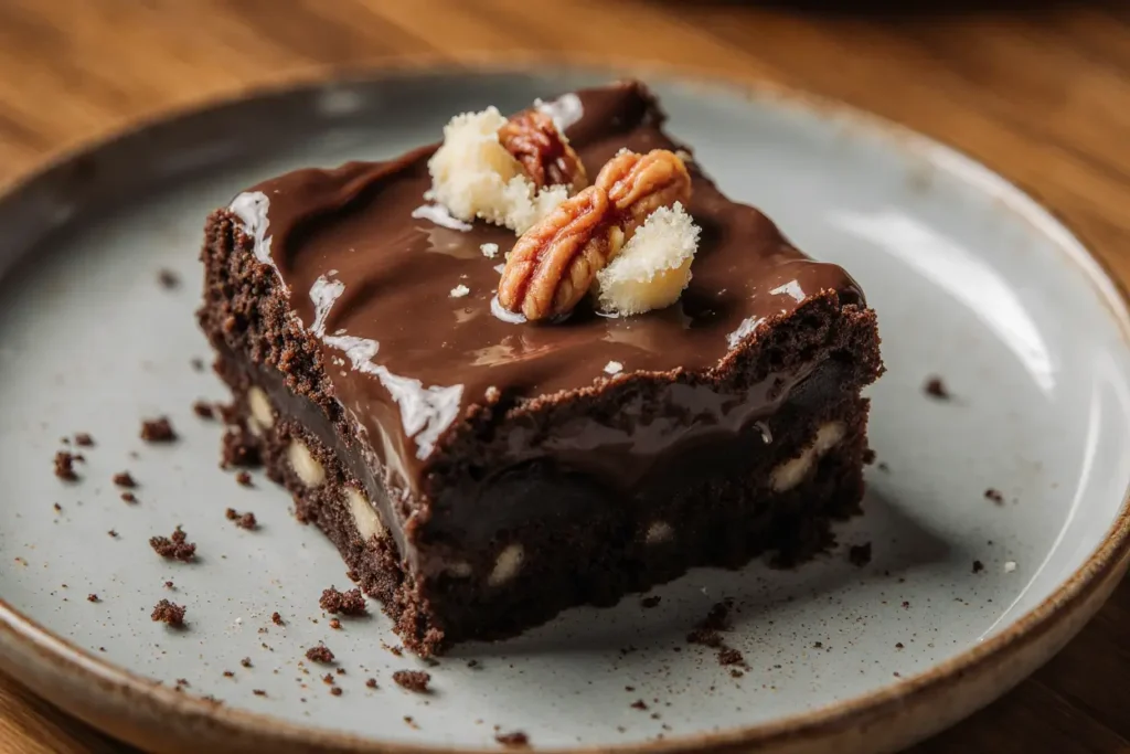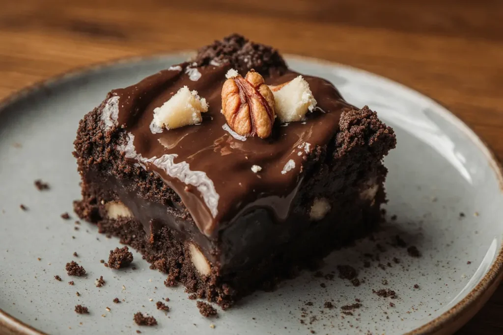 Reserve about ¼ cup of toasted walnuts for topping, then fold the remaining nuts into the batter with just 3-4 gentle strokes. Uneven distribution is actually desirable here, creating pockets of walnut-rich and chocolate-rich sections that make each bite interesting. Some bakers prefer adding half the walnuts to the batter and sprinkling the rest on top for textural variety.