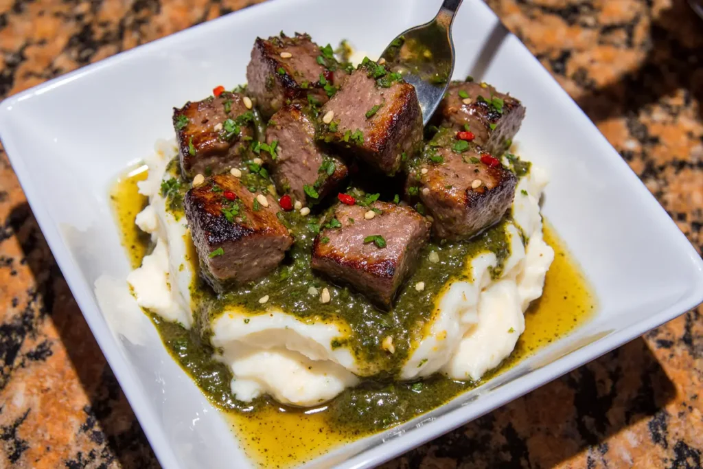 For entertaining, thread the steak bites onto small skewers with cherry tomatoes and serve as appetizers with a horseradish cream or chimichurri dipping sauce. This presentation elevates them to party-worthy status while maintaining the comfort food appeal.