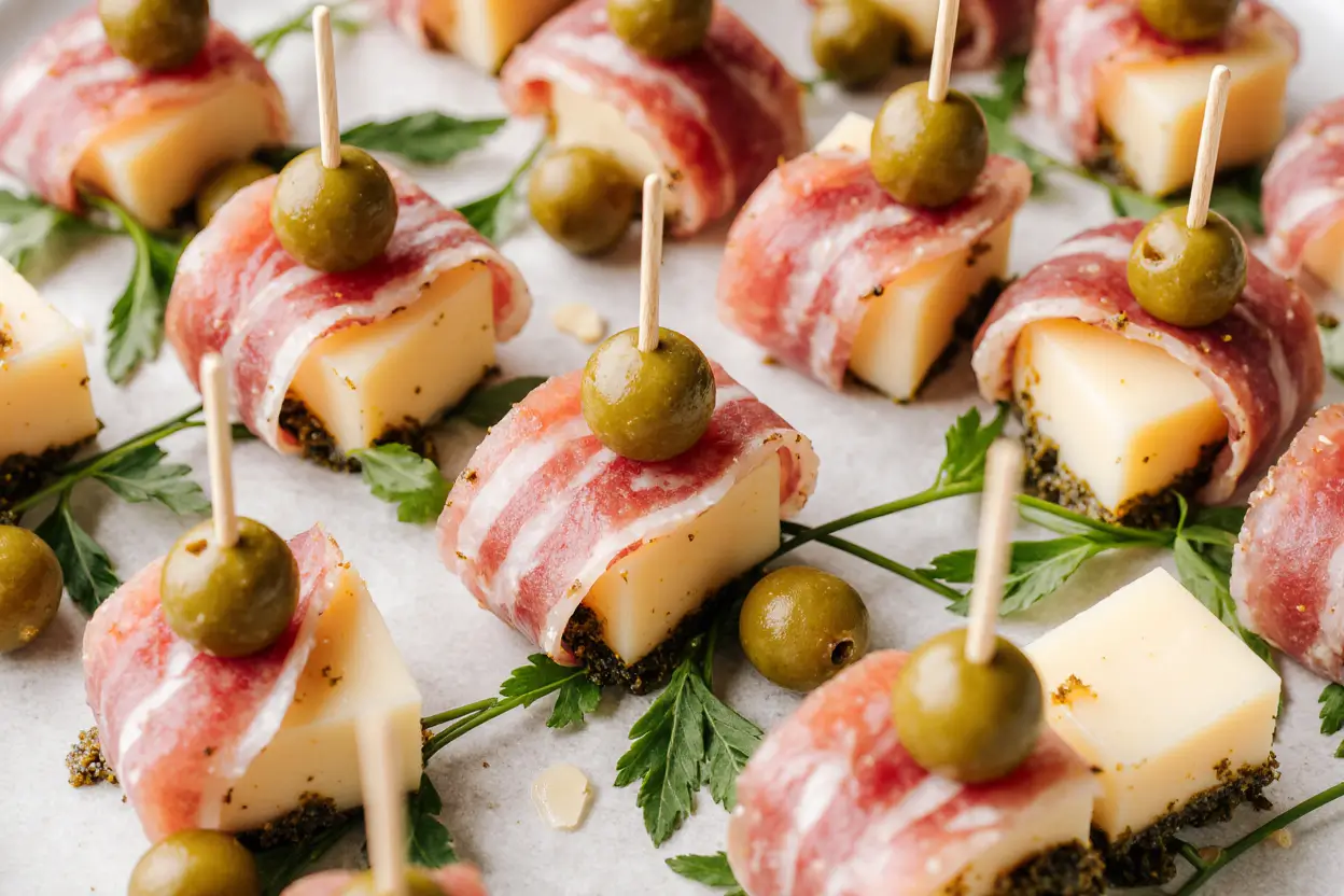 Research indicates that appetizers with odd numbers of ingredients (5 or 7 components) are perceived as more artisanal and visually appealing than even-numbered arrangements. Consider adding pickled pepperoncini, marinated mushrooms, or cubed ham for variation.