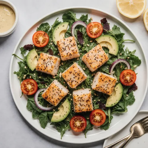 - Salmon alternatives: Grilled chicken breast, seared tuna, or baked tofu for plant-based option