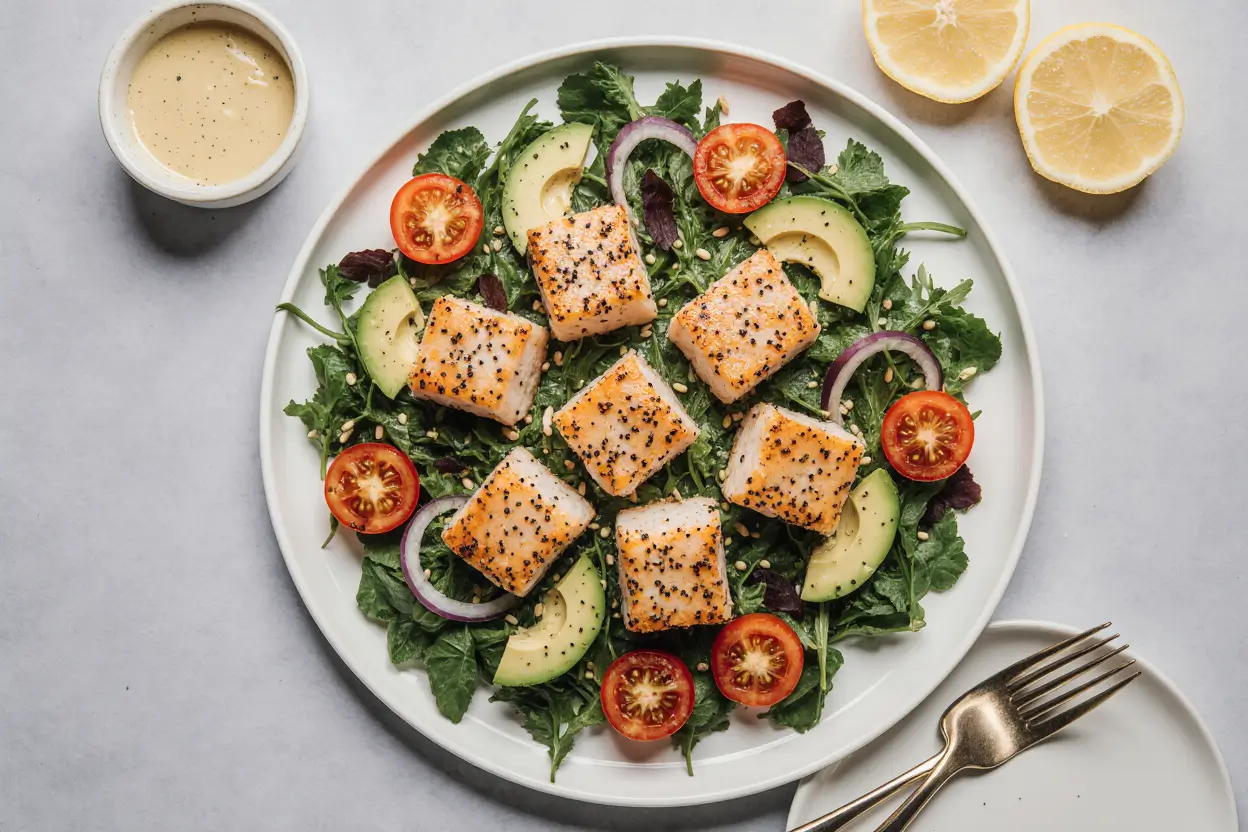 - Salmon alternatives: Grilled chicken breast, seared tuna, or baked tofu for plant-based option