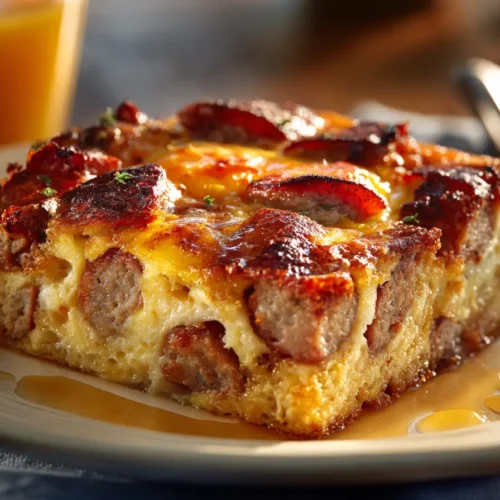 There’s something undeniably comforting about waking up to the aroma of a warm, savory breakfast baking in the oven. This Sausage & Egg Breakfast Casserole is the kind of dish that turns an ordinary morning into something special. Loaded with hearty breakfast sausage, fluffy eggs, cubes of day-old bread, and melty cheddar cheese, it’s the ultimate crowd-pleasing brunch centerpiece.
