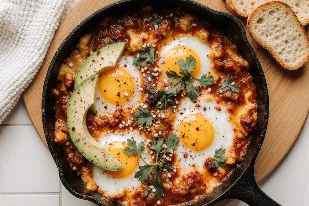 Traditional Presentation: Serve directly from the skillet for a rustic, communal dining experience. Place the hot pan on a trivet in the center of your table with warm pita bread or crusty sourdough for scooping up the eggs and sauce. This family-style approach encourages connection and conversation while keeping the dish hot throughout your meal.
