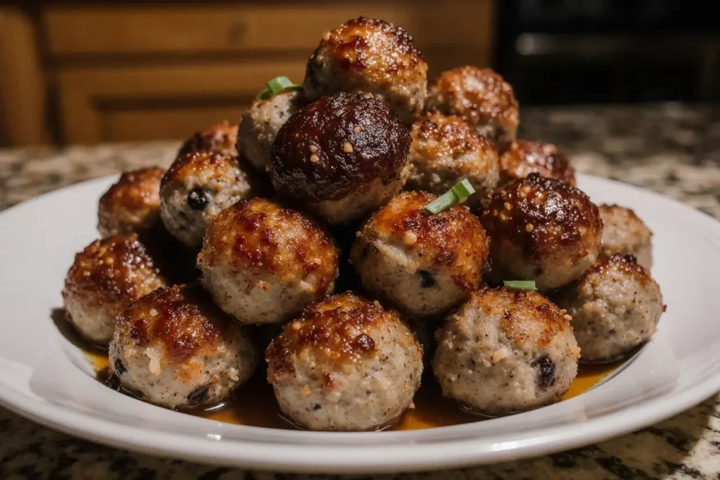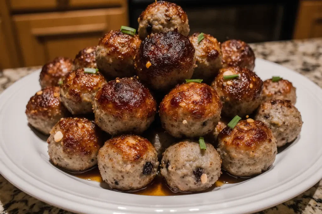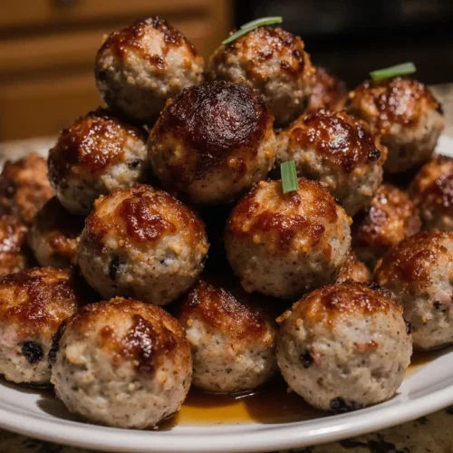 Transform these meatballs into an elegant appetizer by serving them on small skewers or toothpicks alongside a trio of dipping sauces: a creamy cashew garlic aioli, tangy balsamic reduction, and spicy sriracha mayo. Arrange them on a platter with fresh herbs and lemon wedges for a presentation that’s as beautiful as it is delicious. This setup works beautifully for parties and gatherings, as guests can easily grab a meatball and choose their preferred sauce.